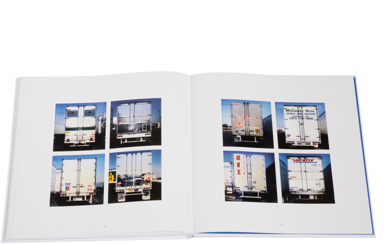 With Road Work, Andrew Holmes continues his pilgrimage through the seductive litter of modern urban life. Cities are conventionally viewed as static objects, but a third of Los Angeles is on the move; it is a kaleidoscope trapped in a grid, where what you see is what you drive past. Road Work presents 500 of Holmes’ Los Angeles Polaroids, capturing the machines that deliver people and goods to different parts of the city every day. These vehicles are seen at the airport, at a truck stop, always in a parking bay, set classically against azure skies, frozen like statues in a Renaissance garden. Nothing transgresses the grid. The work is even; chrome and rust are its soul. Along with an introduction by Holmes, Road Work features a series of blank-verse interludes inspired by the lyrics of Chuck Berry and others.
